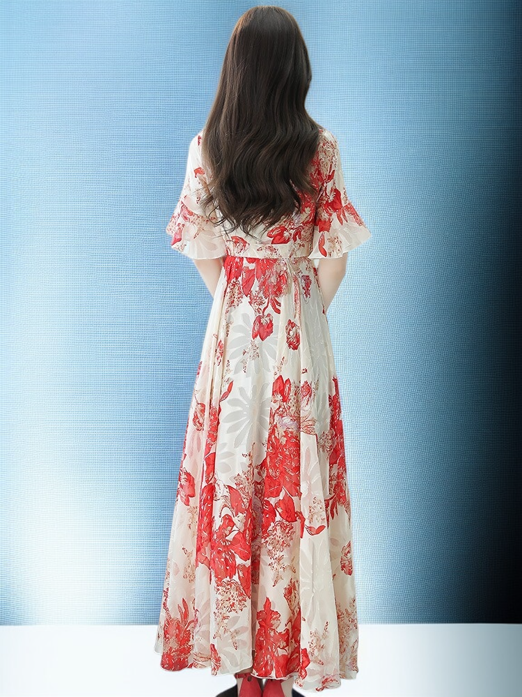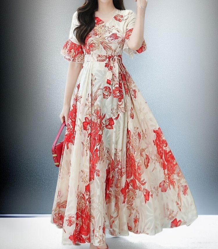 기질 감령 플레어 소매 플라워 트위드 원피스