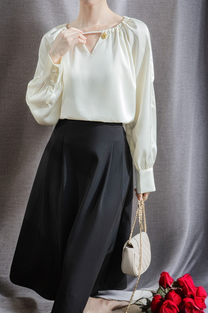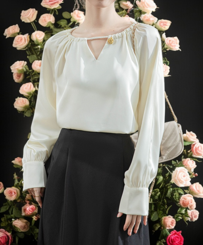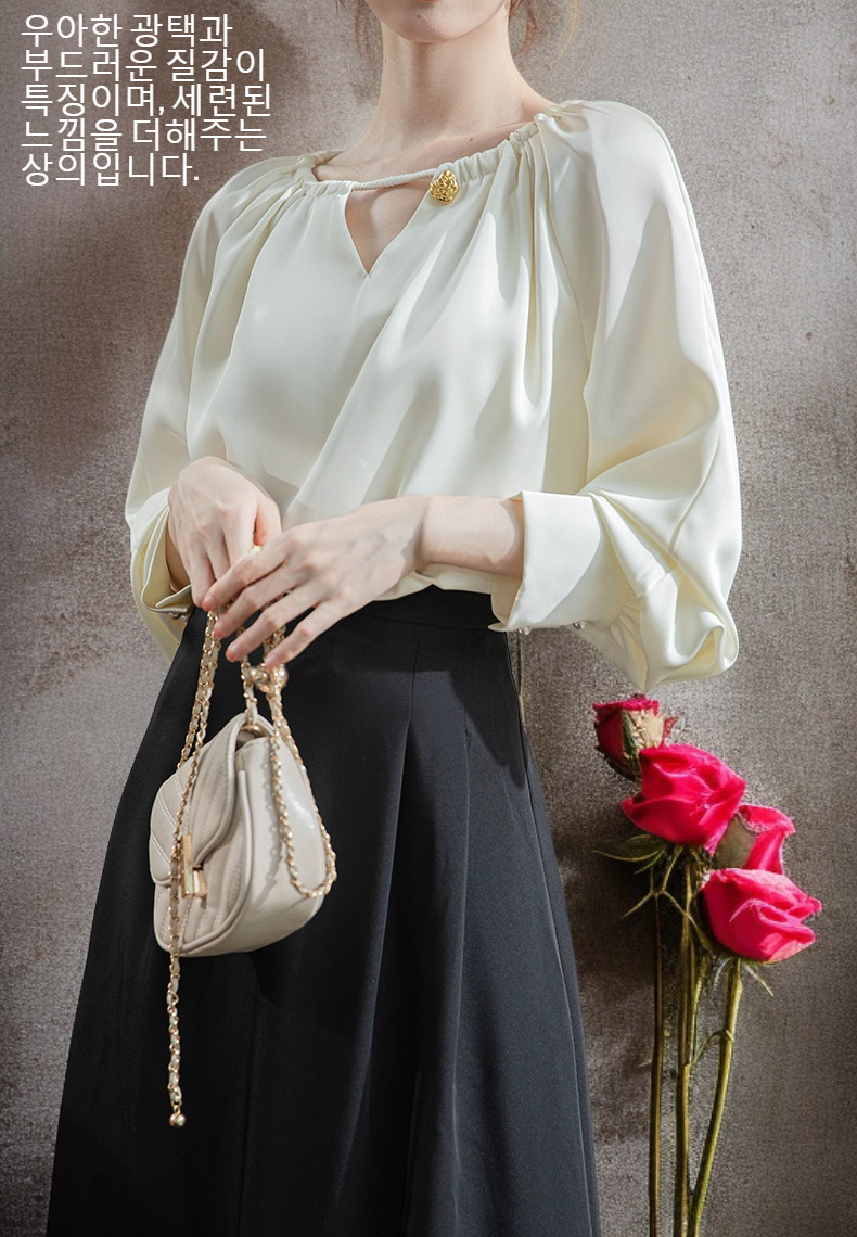 고급 프렌치 감성의 여성 셔츠, 부드러운 소재와 세련된 단면 디자인, 다양한 스타일링에 적합, 편안한 착용감 제공