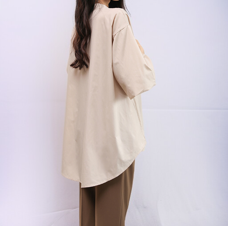 여성 나른하고 헐렁헐렁한 단색 중소매 셔츠
