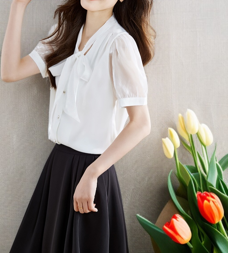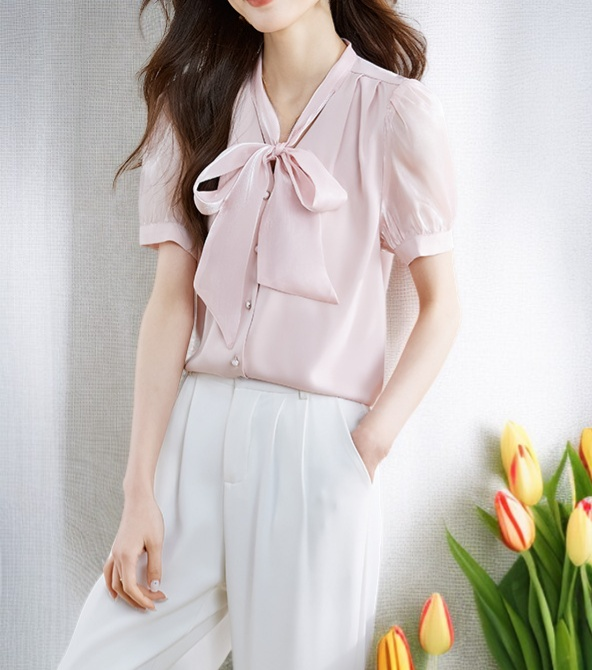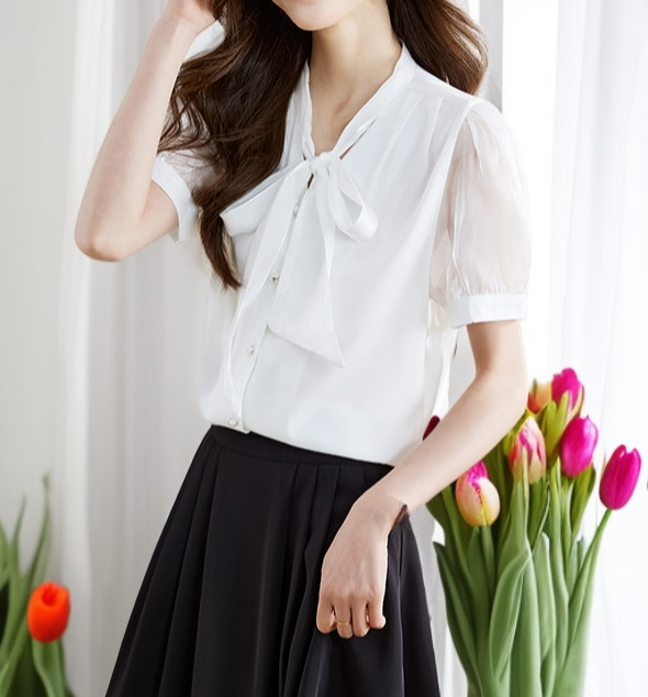 여성 여름 단색 V넥 블라우스